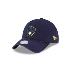 The Milwaukee Brewers Women's Core Classic 9TWENTY Adjustable Cap features an embroidered Brewers at the front panels with a woven tab displaying the team logo and an adjustable closure at the rear.