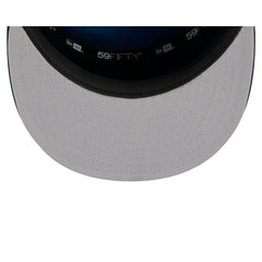 The Minnesota Timberwolves 2025 Tip-Off Split Panel 59FIFTY Fitted Cap features an embroidered Timberwolves logo at the front panels against a pinstripe jersey fabrication with the NBA Logoman at the right-wear side. Additional details include a team wordmark at the rear and a gray undervisor.
