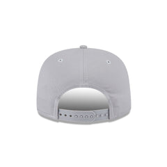 The Minnesota Timberwolves Vintage Gray Golfer features an embroidered 'PROPERTY OF' Timberwolves wordmark at the front panels with a team logo at the right-wear side and a rope at the visor. Additional details include a snapback closure at the rear and a green undervisor.