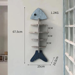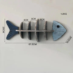 Wooden Fish Skeleton Wall Shelf – Mediterranean Style Decorative Rack