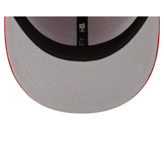 The NC State Wolfpack Hand Signs 59FIFTY Fitted Cap features an embroidered Wolfpack hand Signs graphic at the front panels with a logo at the rear and a gray undervisor.