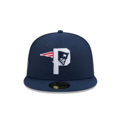 The New England Patriots Deceptor 59FIFTY Fitted Cap features an embroidered Patriots deceptive logo at the front panels with a team logo at the right-wear side. Additional details include a wordmark at the rear, and a gray undervisor.