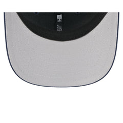 The New England Patriots Team 9SEVENTY Trucker features an embroidered Patriots logo at the front panels with a matching NFL Shield logo above an adjustable snapback closure at a mesh rear and a gray undervisor.