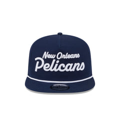 The New Orleans Pelicans Team Text Golfer features an embroidered Pelicans script at the front panels with a team logo at the right-wear side and a snapback closure at the rear.