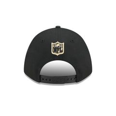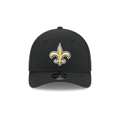 The New Orleans Saints Team 9FORTY M-Crown Snapback features an embroidered Saints logo at the front panels with a matching NFL Shield logo above an adjustable snapback closure at the rear and a gray undervisor.
