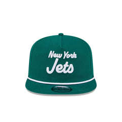 The New York Jets Team Text Golfer features an embroidered Jets script at the front panels with a team logo at the right-wear side and a snapback closure at the rear.