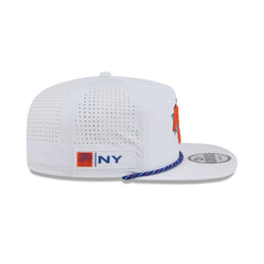 The New York Knicks Optic White Performance Rope Golfer features an embroidered Knicks logo at the front panels with breathable performance fabric throughout the cap. Additional details include a city patch at the right-wear side, an adjustable drawstring closure at the rear, and a blue undervisor.