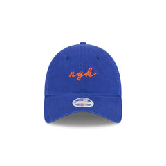 The New York Knicks Women's Script 9TWENTY Adjustable Cap features an embroidered Knicks script at the front panels with a team tag on an adjustable D-Ring closure at the rear.