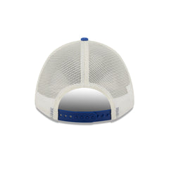The New York Mets Chrome Arch 9FORTY M-Crown A-Frame Trucker Hat features an embroidered Mets logo at the foam front panels with a snapback closure at a mesh rear.