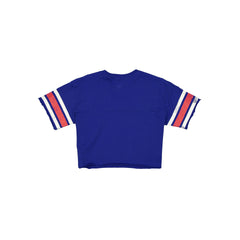 The New York Rangers Throwback Cropped Women's T-Shirt features a screen-printed Rangers graphic at the front with a New Era jock tag at the left hip. This shirt has a cropped fit.