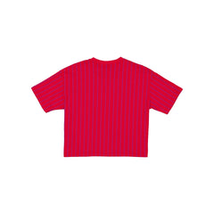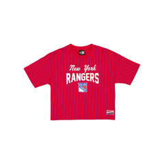 The New York Rangers Throwback Women's Pinstripe T-Shirt features a screen-printed Rangers wordmark and logo at the front with a New Era jock tag at the left hip.