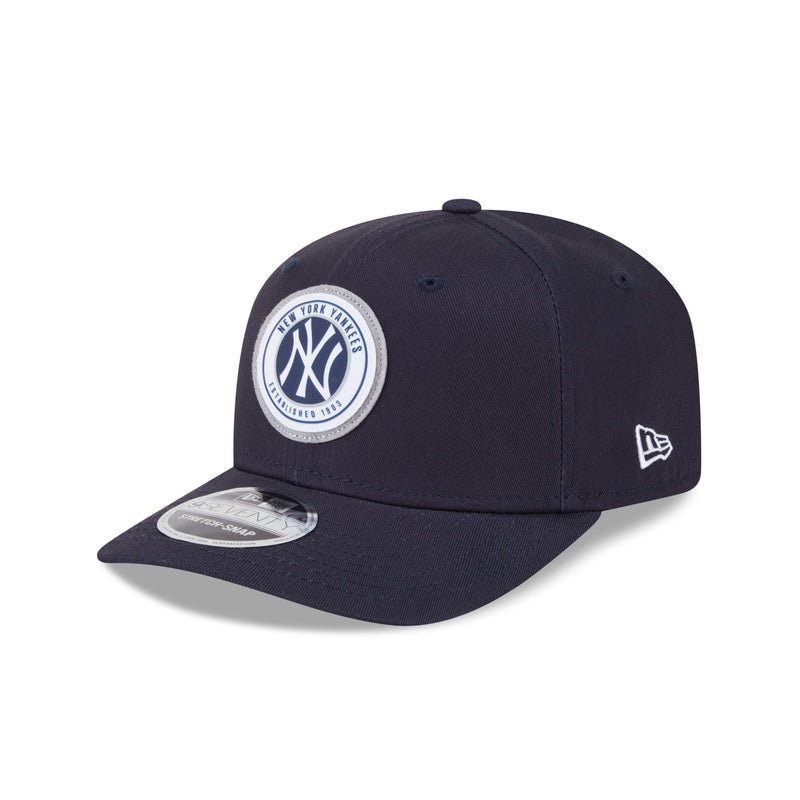 The New York Yankees Circle Patch 9SEVENTY Stretch-Snap Cap features a screen-printed Yankees logo on a woven patch at the front panels with a snapback closure at the rear.