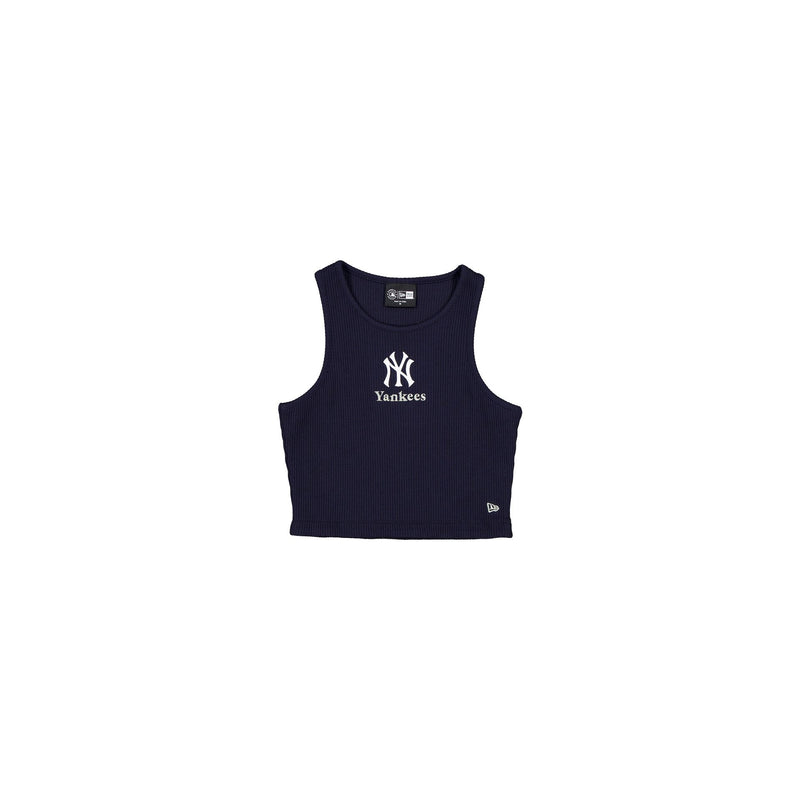 The New York Yankees Leisure Cropped Women's Tank Top features a screen-printed Yankees logo and wordmark at the front. The tank top is cropped.
