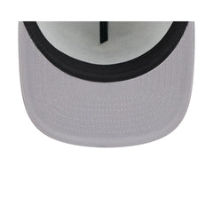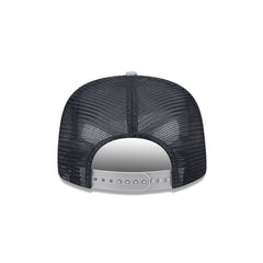 The New York Yankees Retro Script 9FIFTY A-Frame Trucker features a distressed screen-printed Yankees script wordmark and team logo at the front panels with a snapback closure at a mesh rear and a gray undervisor.