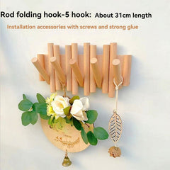 Keep your space neat and stylish with this wall-mounted coat rack crafted from natural wood. Designed with five foldable hooks, it provides a practical solution for hanging coats, bags, hats, and accessories while maintaining a clean, minimalist look. Perfect for entryways, bedrooms, or offices, this durable and compact wall rack adds both function and warmth to any setting.