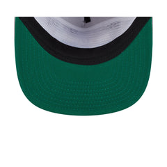 The North Carolina Tar Heels Vintage Gray Golfer features an embroidered 'PROPERTY OF' Tar Heels wordmark at the front panels with a team logo at the right-wear side and a rope at the visor. Additional details include a snapback closure at the rear and a green undervisor.