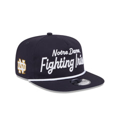 The Notre Dame Fighting Irish Team Text Golfer features an embroidered Fighting Irish script at the front panels with a team logo at the right-wear side and a snapback closure at the rear.