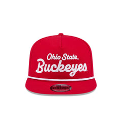 The Ohio State Buckeyes Team Text Golfer features an embroidered Buckeyes script at the front panels with a team logo at the right-wear side and a snapback closure at the rear.
