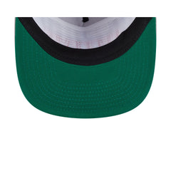The Ohio State Buckeyes Vintage Gray Golfer features an embroidered 'PROPERTY OF' Buckeyes wordmark at the front panels with a team logo at the right-wear side and a rope at the visor. Additional details include a snapback closure at the rear and a green undervisor.
