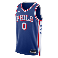 Rock the official Philadelphia 76ers Icon Jersey featuring Tyrese Maxey's #0. Bold blue design captures the speed and intensity of one of Philly's most electrifying players. Show your support for the next generation of 76ers basketball.
