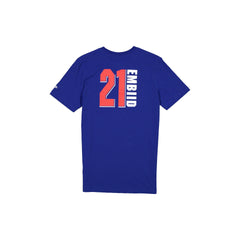 The Philadelphia 76ers Name & Number Joel Embiid T-Shirt features a screen-printed 76ers graphic at the front with the player's name and number at the rear.