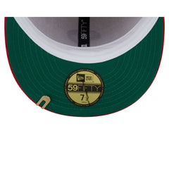 The Philadelphia Phillies Two Tone Cord 59FIFTY Fitted Cap features an embroidered Phillies logo at the front panels against a corduroy fabrication throughout with an MLB Batterman logo at the rear. Additional details include a League patch at the right-wear side, a 1980 World Series visor clip, and a green undervisor.