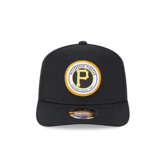 The Pittsburgh Pirates Circle Patch 9SEVENTY Stretch-Snap Cap features a screen-printed Pirates logo on a woven patch at the front panels with a snapback closure at the rear.
