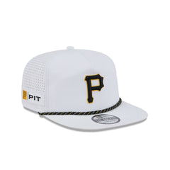 The Pittsburgh Pirates Optic White Performance Rope Golfer features an embroidered Pirates logo at the front panels with breathable performance fabric throughout the cap. Additional details include a city patch at the right-wear side, an adjustable drawstring closure at the rear, and a black undervisor.