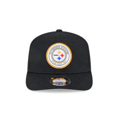 The Pittsburgh Steelers Circle Patch 9SEVENTY Stretch-Snap Cap features a screen-printed Steelers logo on a woven patch at the front panels with a snapback closure at the rear.