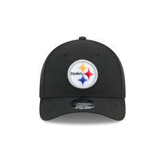 The Pittsburgh Steelers Team 9FORTY M-Crown Snapback features an embroidered Steelers logo at the front panels with a matching NFL Shield logo above an adjustable snapback closure at the rear and a gray undervisor.