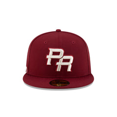 The Puerto Rico Maroon 59FIFTY Fitted Cap features an embroideMaroon PR logo at the front panels with a matching team wordmark at the right-wear side and a gray undervisor.