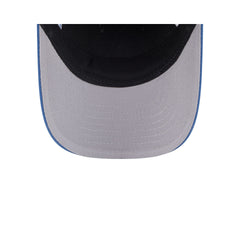 The Pumas Indigo 9FORTY M-Crown A-Frame Trucker features the Pumas primary logo embroidered at the front panel with alternate team logos throughout the crown, a team wordmark above a snapback closure at the rear, and a gray undervisor.