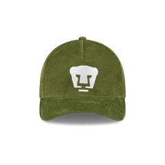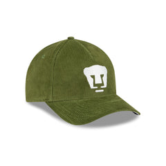 The Pumas Olive Corduroy 9FORTY M-Crown Snapback features an embroidered Pumas logo at the front panels with a snapback closure at the rear and a gray undervisor.