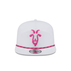 The RangeGoats GC Performance Rope Golfer features an embroidered RangeGoats GC logo at the front panels with breathable performance fabric throughout the cap. Additional details include a team patch at the right-wear side, an adjustable drawstring closure at the rear, and a black undervisor.