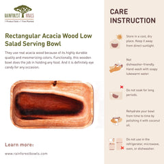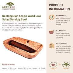 Rectangular Acacia Wood Low Salad Serving Bowl