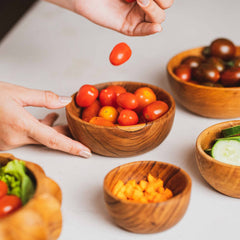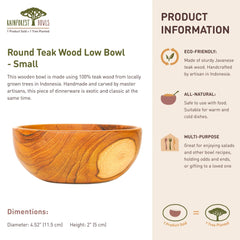 This handcrafted teak wood side dish bowl brings a natural and timeless look to your table. Made from solid Javanese teak, it is durable and designed for long-lasting use. With a smooth, food-safe finish and unique wood grain patterns, each piece is one of a kind.