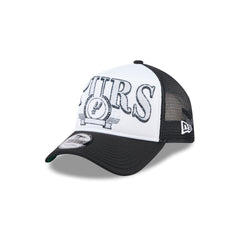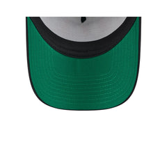 The San Antonio Spurs Distressed 9FORTY A-Frame Trucker features a distressed screen-printed Spurs wordmark and logo at the front panels with a team tag at a snapback closure at the rear and a green undervisor.