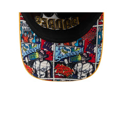The San Diego Padres Diamond Hero Edition 9TWENTY Adjustable Cap features an embroidered Padres onomatopoeia pop wordmark at the front panels with a ZOOM! wordmark at the left-wear side. Additional details include the MLB Batterman logo above an adjustable D-Ring closure at the rear and a baseball comic undervisor.