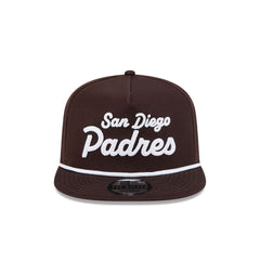 The San Diego Padres Team Text Golfer features an embroidered Padres script at the front panels with a team logo at the right-wear side and a snapback closure at the rear.