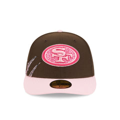 The San Francisco 49ers Brains 59FIFTY Fitted Cap features an embroidered brain themed 49ers logo at the front panels with a matching NFL Shield at the rear. Additional details include scratch details at the right-wear side with a light pink visor and a gray undervisor. This cap comes with a pre-curved visor.