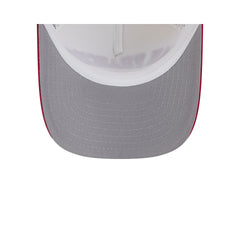 The San Francisco 49ers Chrome Arch 9FORTY M-Crown A-Frame Trucker Hat features an embroidered 49ers logo at the foam front panels with a snapback closure at a mesh rear.