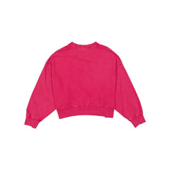 The San Francisco 49ers Throwback Women's Crewneck features a screen-printed 49ers graphic at the front and a New Era jock tag at the left hip.