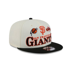 The San Francisco Giants Archive 9FIFTY Snapback features an embroidered Giants wordmark and various team logos at the front panels with a snapback closure at the rear and a gray undervisor.
