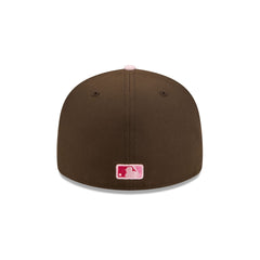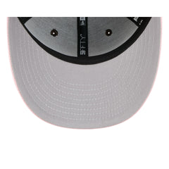 The San Francisco Giants Brains 59FIFTY Fitted Cap features an embroidered brain themed Giants logo at the front panels with a matching MLB Batterman logo at the rear. Additional details include scratch details at the right-wear side with a light pink visor and a gray undervisor. This cap comes with a pre-curved visor.