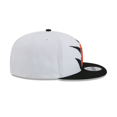 The San Francisco Giants Jagged 9FIFTY Snapback features an embroidered Giants logo at the front panels with a jagged pattern fabrication throughout the cap. Additional details include a snapback closure at the rear and a gray undervisor.