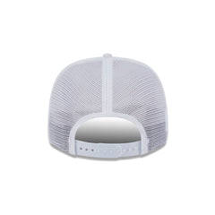 The San Francisco Giants Pattern 9SEVENTY Trucker Hat features an allover flamingo print with an embroidered Giants logo at the front panels with an adjustable snapback closure at a mesh rear.