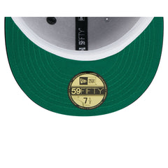 The San Francisco Giants Spring Satin 59FIFTY Fitted Cap features an embroidered Giants wordmark at the front panels with a New Era pin at the top left panel and an MLB Batterman logo at the rear. Additional details include a satin fabrication throughout, a logo at the right-wear side, and a green undervisor.