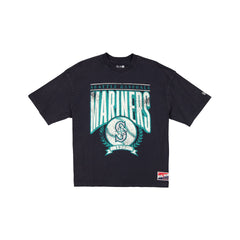The Seattle Mariners Throwback Boxy T-Shirt features a screen-printed Mariners graphic at the front and a New Era jock tag at the left hip.