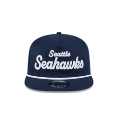 The Seattle Seahawks Team Text Golfer features an embroidered Seahawks script at the front panels with a team logo at the right-wear side and a snapback closure at the rear.