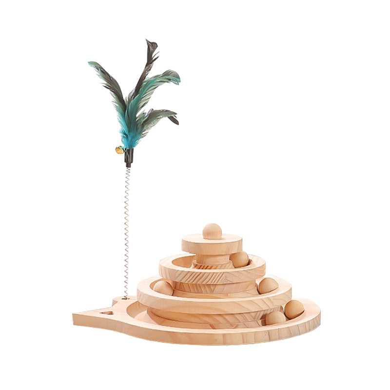 Keep your feline entertained and active with this handcrafted wooden cat tower. Designed with smooth edges and multiple rolling ball tracks, it encourages natural play behaviors such as chasing, swiping, and hunting. The minimalist wooden structure fits seamlessly into any home interior, offering both style and fun for your cat.